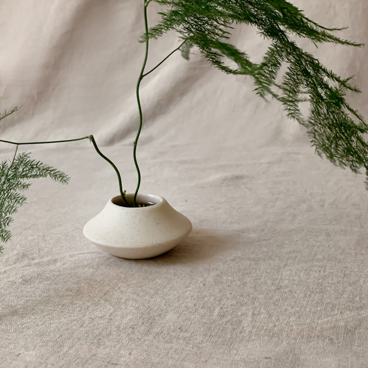 식물과 어우러지는 곡선을 생각하며 만든 핸드메이드 세라믹 화기입니다. 물을 넣은 화기에 침봉을 이용해서 나만의 방법으로 꽂아 사용해 주세요.